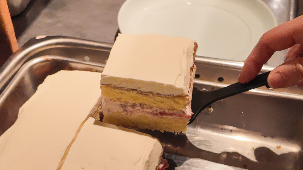 それぞれが重なりながら、ひとつのケーキとしてまとまっていきます。そんな変化も、このケーキの楽しさのひとつです。