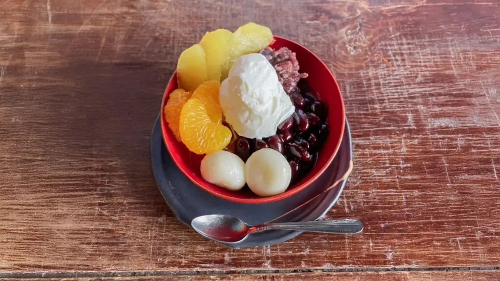 金木犀の香りをのせて秋風が心地よく吹くなか、のんびりと秋のあんみつを味わってみてください。