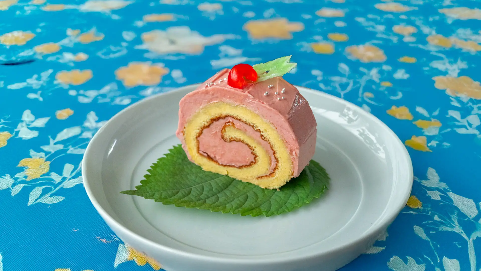 「あじさいケーキ」の飾りは、ドライチェリー、緑の砂糖漬けの葉っぱ、銀のつぶつぶ──まさに昭和。