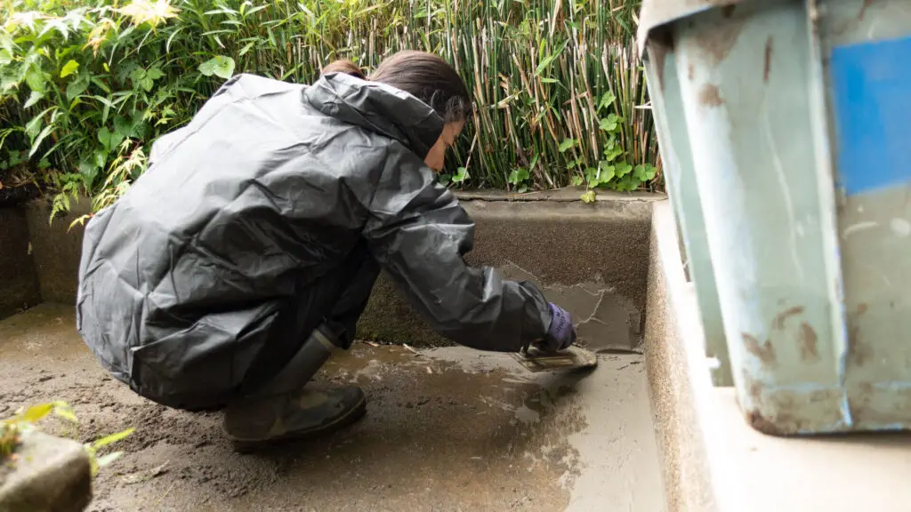 それをこの週末、防水セメントで穴埋めをして補修しました。