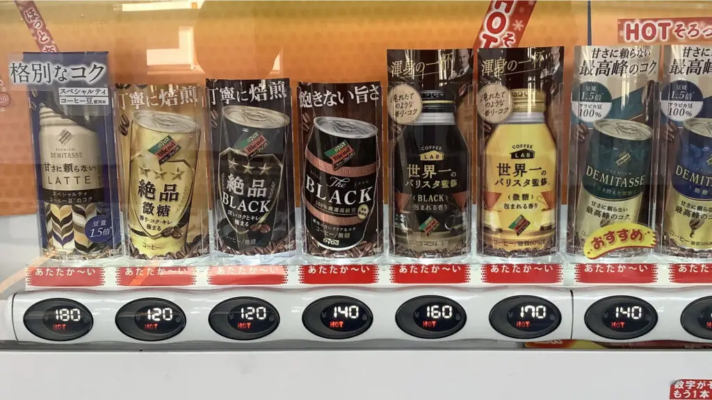 ひとつの自販機に120円から180円の缶コーヒーがずらりと並んでいるのです。