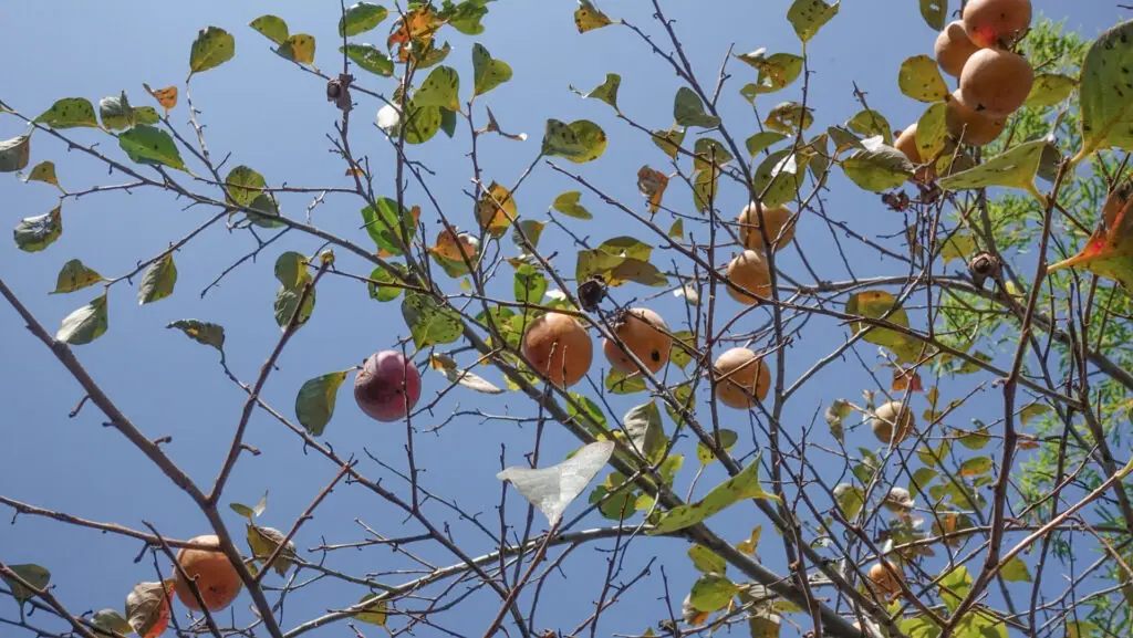 木の上を見上げると、橙色の実がちらほら。