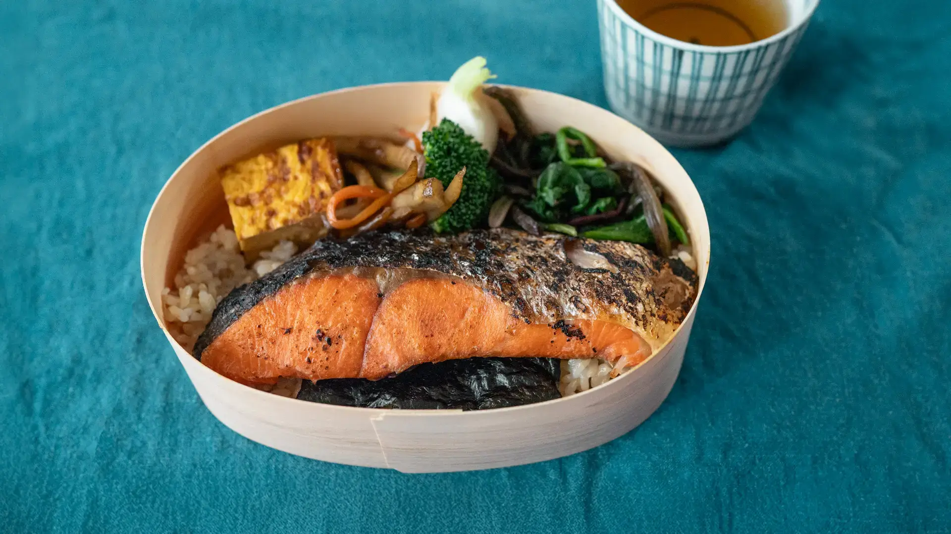 器には、杉の香りが心地よい「曲げわっぱ」の使い捨て容器を選びました。蓋を開けた瞬間にふわっと木の香りが広がり、心がじんわり温かくなる。そんなひとときを皆様にお届けしたいと思っているんですよ。