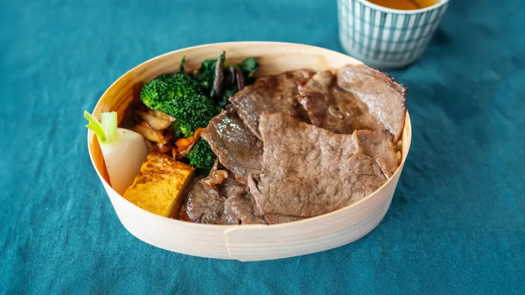 鮮度の良い国産牛を使用し、脂の少ない部位を甘辛く、香ばしく焼き上げました。噛むほどに肉の旨みと特製ダレの香りが広がる、さっぱりとした味わいの牛肉弁当です。
