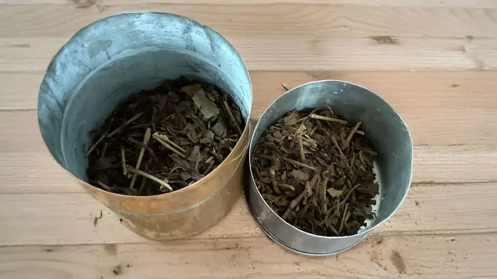 一方、この「釜炒り茶」は、鉄釜で炒って酸化を止めるという製法。