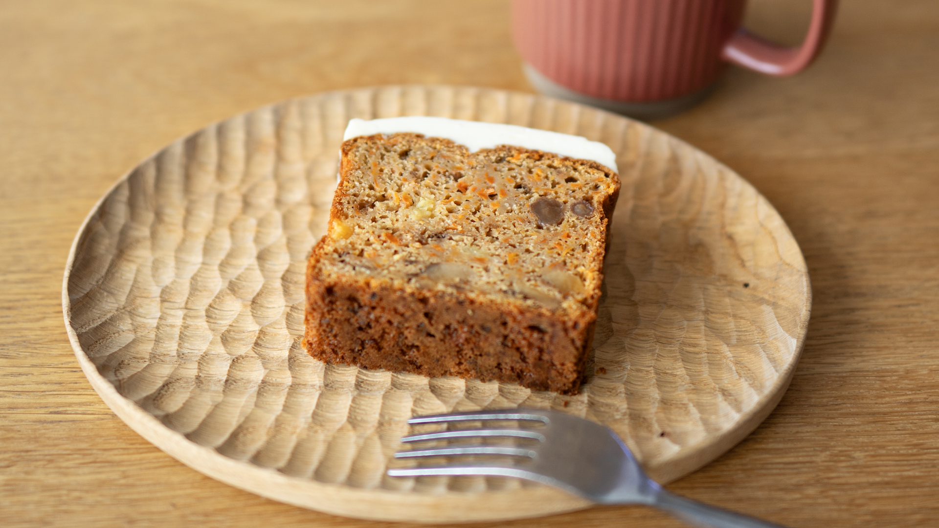 にんじんの量は小麦粉の1.5倍以上。どんだけ入れてんだよっていう、たっぷりのにんじんで作っています。まぁ、キャロットケーキだから当たり前だけど。シナモンとナツメグが香る生地にラムレーズン、パイナップル、胡桃を一緒に練り込んでいます。クリームチーズフロスには檸檬を効かせて。これってすっぴんめのヒトが好きよね?